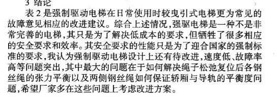 ② 功耗大 所谓强制驱动,也就是强行将电梯轿厢吊起,中间没有任何借力的部件,功耗必然就高,一般同样的载重,能耗比正常曳引电梯高3-4倍,由于没有对重,靠强制驱动,相同功率下它的起重能力不及曳引,反过来说,相同起重能力下肯定比曳引功耗大。